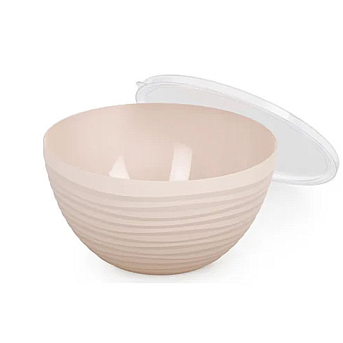 Чаша Оазис с крышкой, бежевый, 2,5 л — это универсальное решение для современной хозяйки, сочетающее функциональность, стиль и удобство. Благодаря оптимальной вместимости, глянцевой внутренней поверхности и плотно прилегающей прозрачной крышке, она идеально подходит для приготовления, подачи и хранения пищи. Изготовленная из безопасного пищевого пластика, чаша устойчива к повреждениям и проста в уходе, включая возможность мытья в посудомоечной машине. Её лаконичный дизайн и практичность делают её не только полезным аксессуаром на кухне, но и отличным подарком.
