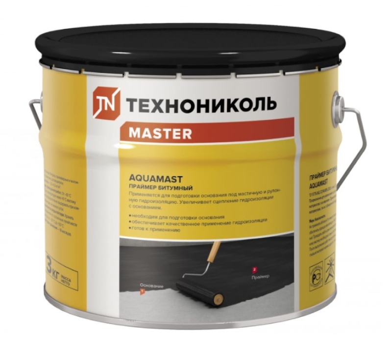 Мастика гидроизоляционная АguaMast для кровли (3 кг) 420918 изготавливают путем смешивания органического растворителя с нефтяными битумами. Основное отличие продукции от других битумных праймеров – более простой состав, который отвечает всем требованиям частного строительства. При помощи данного раствора выполняют подготовку цементно-песчаных оснований перед последующим нанесением на них различных гидроизоляционных покрытий. Праймер легко наносится при помощи валика или кисти. Применяется праймер совместно с рулонными битумными материалами и с обмазочной гидроизоляцией.