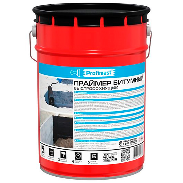 Праймер битумный быстросохнущий Profimast — это эффективное средство для подготовки поверхностей перед нанесением гидроизоляционных материалов, наплавляемых кровельных покрытий и гибкой черепицы. Благодаря быстрому высыханию, высокой адгезии и возможности применения при отрицательных температурах, он обеспечивает прочное сцепление материалов с основанием. Основное отличие от других грунтовочных составов заключается в его универсальности: праймер совместим со всеми битумными и битумно-полимерными материалами, а также возможностью нанесения методом безвоздушного распыления.