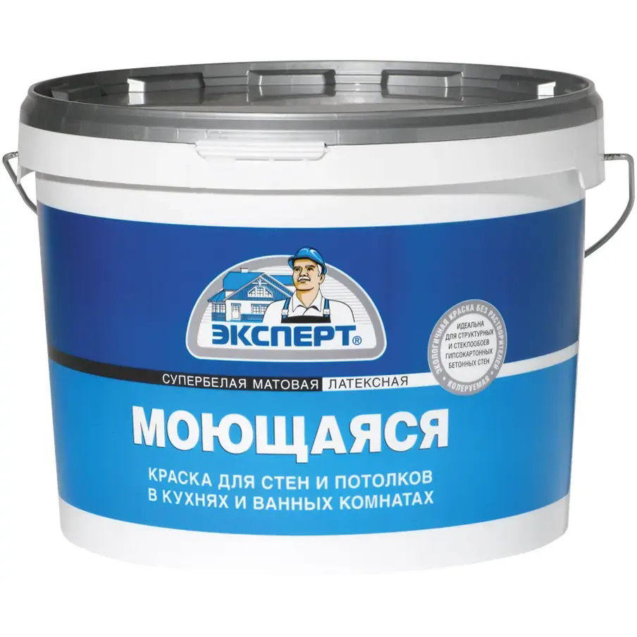 Краска моющаяся супербелая Эксперт, 14 кг представляет собой водно-дисперсионный состав на акрил-стироловой основе, разработанный для создания долговечных декоративных покрытий в жилых и коммерческих интерьерах. Латексная формула обеспечивает повышенную прочность плёнки: после высыхания поверхность можно многократно протирать влажной тканью с моющими средствами: краска не стирается, не мелится и не отслаивается. Супербелый матовый финиш визуально освежает пространство, маскирует мелкие дефекты основания и служит универсальной базой для колеровки в любой оттенок. Продукт легко наносится валиком, кистью или краскопультом без разбрызгивания и потёков, а практически полное отсутствие запаха позволяет проводить работы в обжитых помещениях без дискомфорта. Быстрое высыхание ускоряет ремонтные процессы, удобна для точечного обновления интерьера.