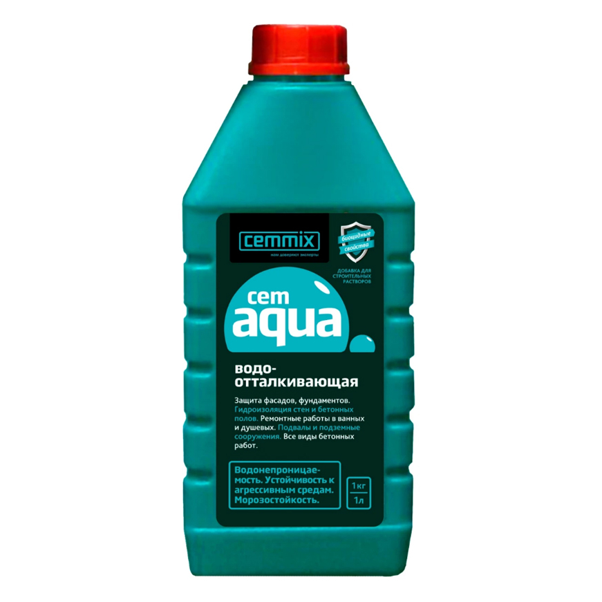 Добавка водооталкивающая Cemmix "Cemaqua", 1 л - основное действие добавки CemAqua: комплекс полимеров обеспечивает объемную гидрофобизацию, снижает водопоглощение, препятствует появлению высолов и плесени. Устраняет увлажнения поверхности и, следовательно, снижает теплопроводность, увеличивает коррозионную стойкость.