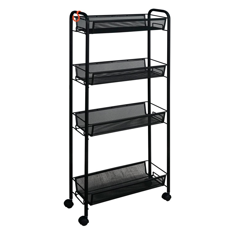 Этажерка "Ладья 14 К", Э 372Ч — это мобильная, вместительная и функциональная система хранения, созданная для тех, кто ценит порядок, практичность и свободу перемещения в пространстве. В отличие от стационарных шкафов или стеллажей, она оснащена четырьмя глубокими корзинами из металлического полотна с сетчатой структурой — они надёжно удерживают даже мелкие предметы, не позволяя им выпадать, и выдерживают до 10 кг каждая. Пластиковые колёсики обеспечивают плавное перемещение по полу — идеально для кухни, прихожей, детской, офиса или гаража. Габариты 440×170×985 мм позволяют разместить её вдоль стены, в углу или даже между мебелью, а сборно-разборная конструкция из прочной стальной трубы 12 мм и листа ПВЛ делает её удобной для транспортировки и хранения. Чёрный цвет и лаконичный дизайн гармонично вписываются в любой интерьер — от минимализма до лофта. Это не просто полка — это мобильный органайзер, который превращает хаос в порядок и экономит ваше время.
