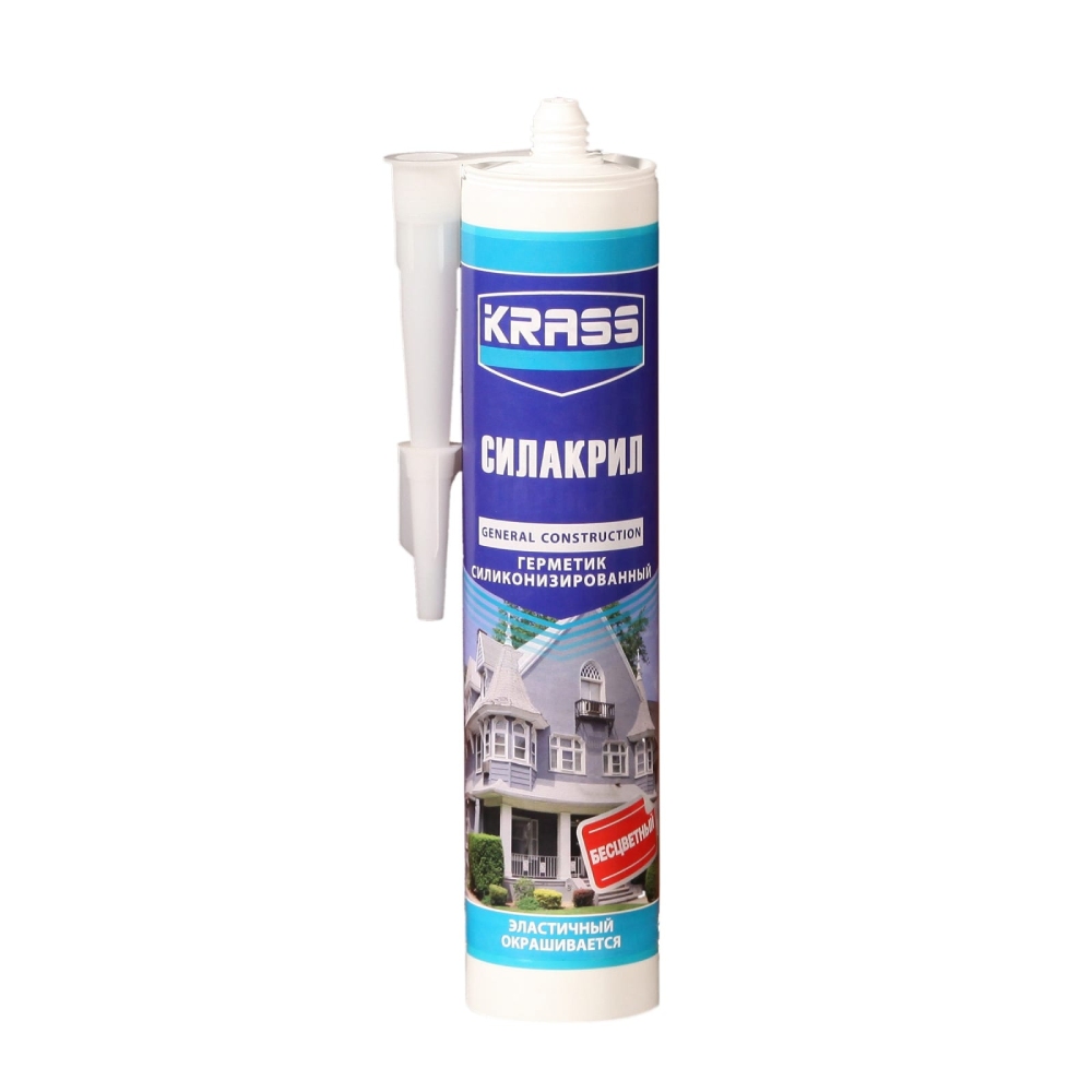 Герметик Krass, силиконизированный, прозрачный, 300 мл предназначен для изоляции и уплотнения швов душевых кабин, ванн и кафеля, заполнения трещин, герметизации соединений гипсокартонных плит, исправления небольших дефектов на оштукатуренной поверхности перед окраской, для соединения конструкционных и строительных элементов.