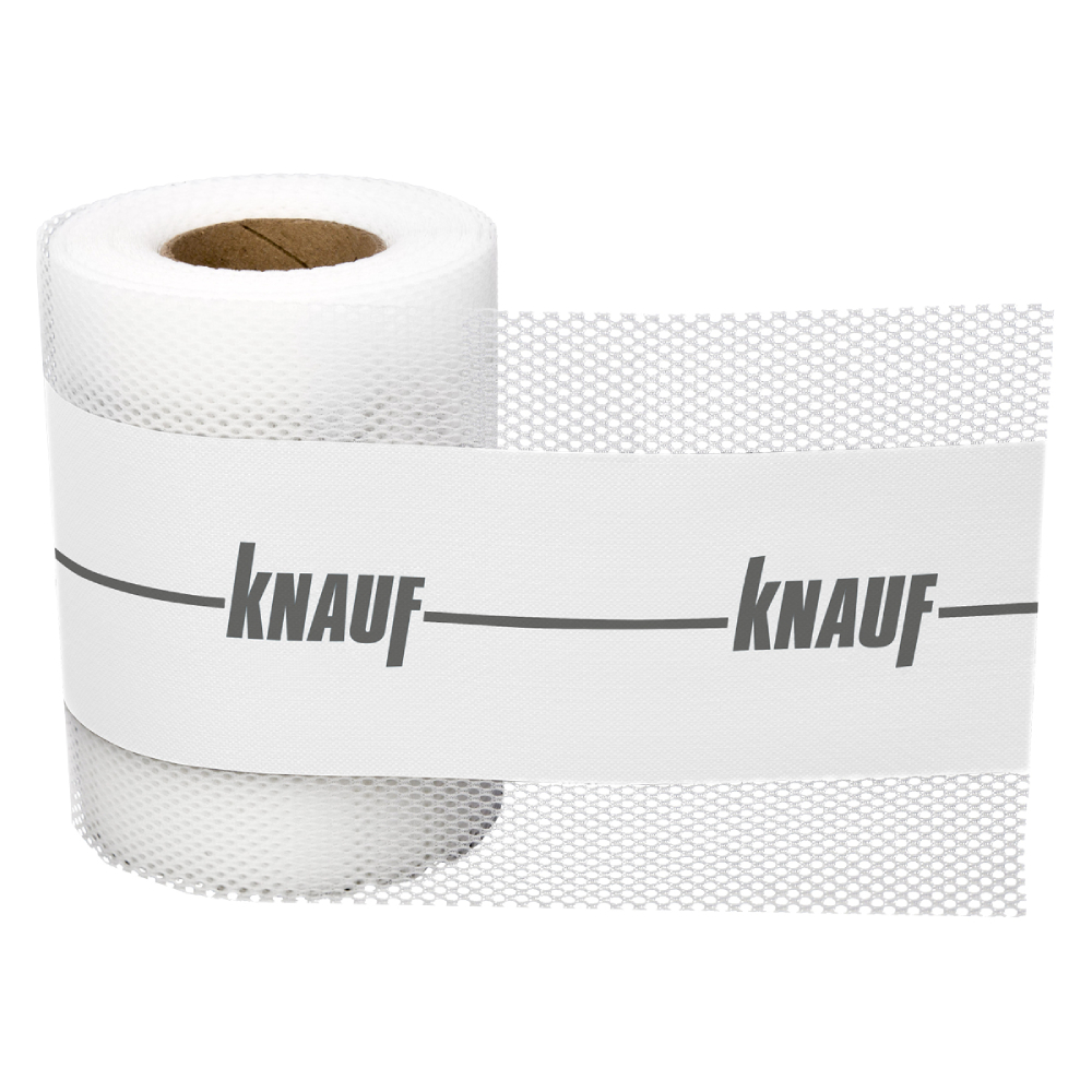 Лента гидроизоляционная Knauf, Флэхендихтбанд, 10 м x 7/12 см представляет собой тонкую, высокопрочную, эластичную полиэфирную сетчатую ленту, с нанесённой по продольной оси полосой водонепроницаемого, стойкого к старению эластомера.