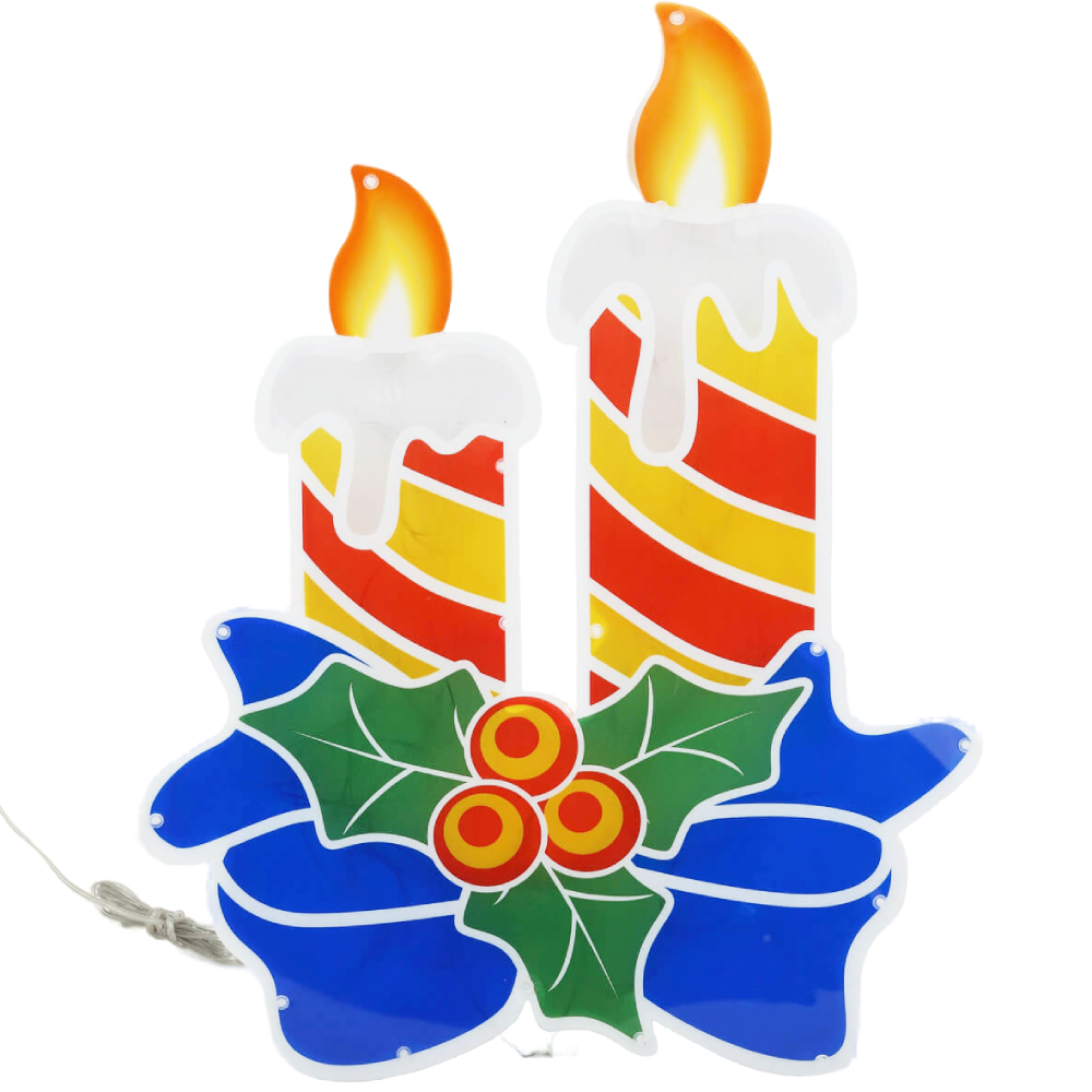 Фигура Свечки, LED, 220V, IP44, ENIOF-09 для праздничного декора внутри и снаружи помещений. Защищена от влаги и пыли (IP44), отличается морозостойкостью. Работает от стандартной электросети 220 В, прозрачный провод практически не заметен. Светится тёплым белым светом, который создаёт атмосферу уюта. Дизайн фигуры идеально подходит к зимним праздникам. Разноцветные свечки отлично смотрятся и в выключенном, и во включённом состоянии. Размеры: 40 х 4,5 х 50 см. В качестве источников света применены 20 ярких и экономичных светодиодов, которые не перегреваются даже при длительной работе без перерывов. Новогодняя LED-фигура - простой и быстрый способ создать праздничное настроение, украсить дом, офис, общественное пространство.