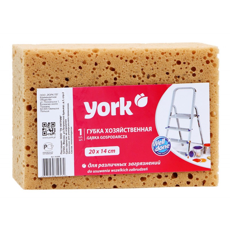 Губка хозяйственная "ЙОРК" 012090 - большая и удобная губка для мытья больших поверхностей. Деликатная, не царапает поверхность. Эффективно устраняет загрязнения.