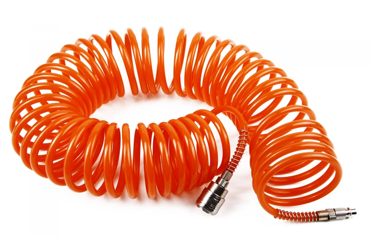 Шланг спиральный воздушный MATRIX 57002 изготовлен из нейлона, стойкого к агрессивным средам. Оснащен быстросъемными соединениями с антикоррозийным покрытием. Используется для соединения компрессора с различными насадками.