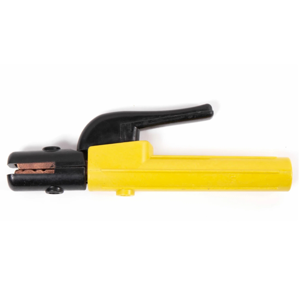 Держатель электродов Weld, Hollo, железный, 300A предназначен для крепления электрода, подвода к нему сварочного тока и манипулирования электродом при сварке. Электрододержатель обеспечивает надежное крепление электрода в различных положениях, чтобы исключить возможность изгиба последнего при сварке в труднодоступных местах.