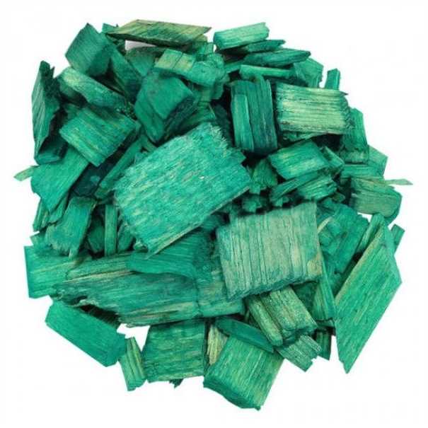 Щепа декоративная, зеленая, 60 л - декоративная щепа производится из хвойных пород деревьев и окрашивается специальной краской безвредной для человека и растений. Натуральный и безопасный мульчирующей материал.