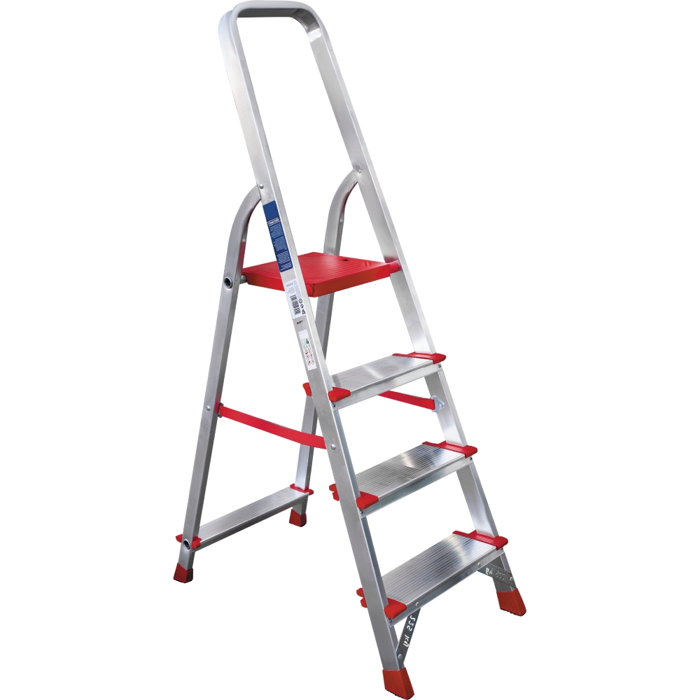 Профессиональная стремянка Новая Высота, алюминиевая, 1x4 ступеней, 130 мм имеет повышенную прочность и надёжность при небольшом весе изделия. Легко устанавливается и обеспечивает высокий уровень комфорта. Ступени и стойки из прессованных алюминиевых профилей увеличенного сечения. Рифлёная поверхность ступеней способствует безопасному подъёму и спуску. Рифлёная безопасная площадка площадка из оцинкованной стали с порошковой покраской. Прочные страховочные ремни. Опорные наконечники из прочного пластика обеспечивают устойчивое положение. Компактность при хранении и транспортировке. Практичность и внимание к каждой детали гарантируют безопасность работы на любой высоте.