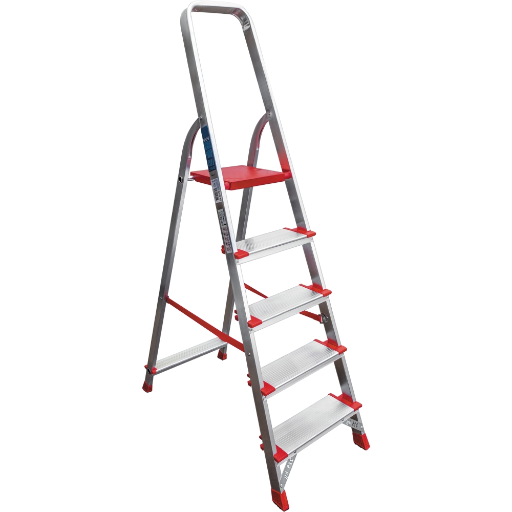 Профессиональная стремянка Новая Высота, алюминиевая, 1x5 ступеней, 130 мм - имеет повышенную прочность и надёжность при небольшом весе изделия. Легко устанавливается и обеспечивает высокий уровень комфорта. Ступени и стойки из прессованных алюминиевых профилей увеличенного сечения. Рифлёная поверхность ступеней способствует безопасному подъёму и спуску. Прочное крепление ступеней к боковинам 6 заклёпками придаёт конструкции высокую устойчивость. Рифлёная безопасная площадка площадка из оцинкованной стали с порошковой покраской. Прочные страховочные ремни. Опорные наконечники из прочного пластика обеспечивают устойчивое положение. Компактность при хранении и транспортировке. Практичность и внимание к каждой детали гарантируют безопасность работы на любой высоте.