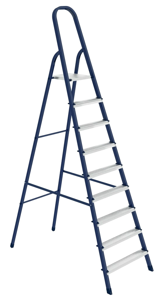 Стальная стремянка 9 ступеней ВИКАРТ 9СТ имеет специальную дугу для безопасности при работе на большой высоте. Высота до верхней площадки 1,87 м. Каркас изготовлен из стальной профтрубы, ступенька штампованная из алюминия, окрашена порошковой краской. Пластиковые ножки защищают пол от царапин. Упаковано в стрейч пленку.