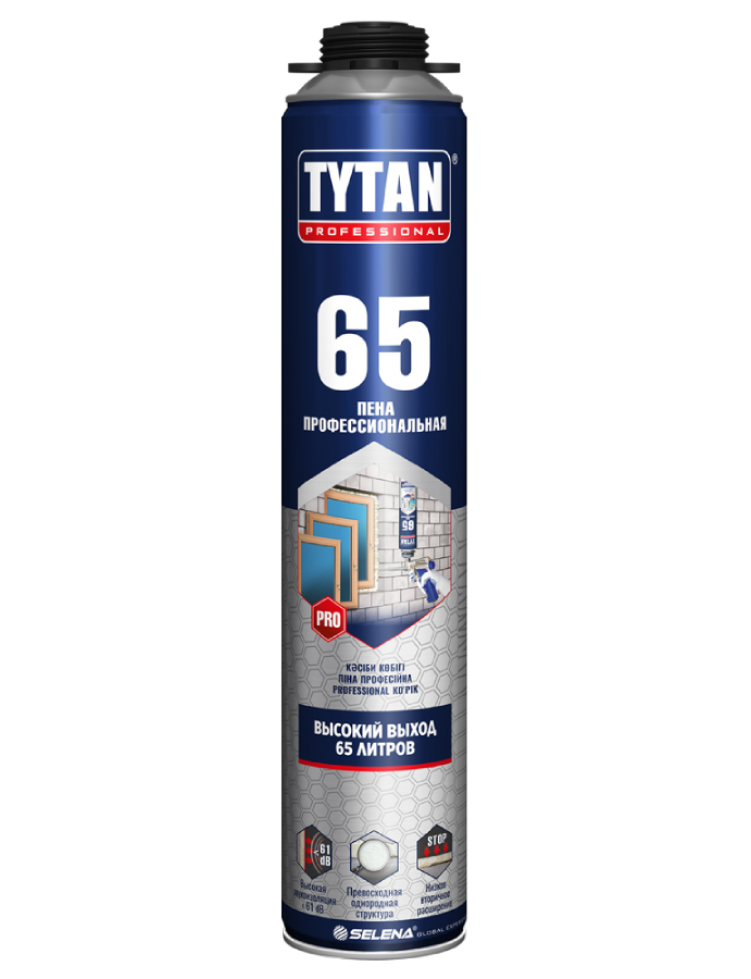 Пена монтажная профи 750 мл, 65 л TYTAN 113230 - иновационная, однокомпонентная полиуретановая пена нового поколения не выделяет вредных паров и безвредна для здоровья. Отличается самой высокой производительностью (до 65 л. пены при наполнении баллона 750 мл), что снижает стоимость материала. Пенам свойственно низкое вторичное расширение, благодаря чему состав не деформирует конструкции. Профессиональное применение с использованием пистолета обеспечивает точность и эффективность нанесения пены.