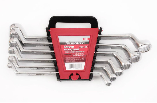 Набор ключей 6-17 мм, накидных 6 шт MATRIX предназначены для монтажа/демонтажа резьбовых соединений. Изготовлены из хромванадиевой стали. Твердость накидной рабочей части – 44 HRc. Ключи имеют полированное хромоникелевое покрытие.