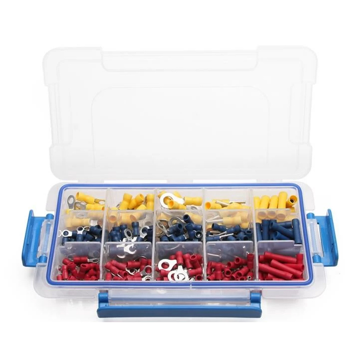 Набор наконечников и клемм универсальный, кольцевой, вилочный, плоский, гильза - содержит наиболее популярные размеры изолированных наконечников и гильз.