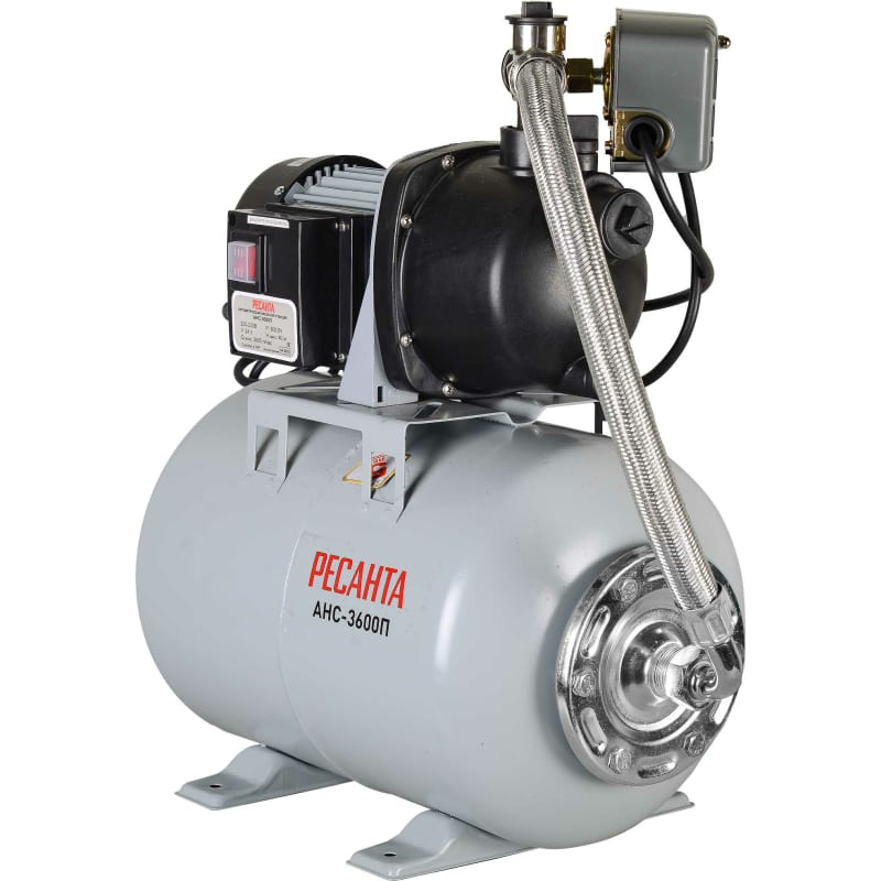 Насосная станция Ресанта, АНС-3600П, 800 Вт предназначена для бесперебойного водоснабжения в автоматическом режиме, коттеджей, дач, ферм и других потребителей. При этом она автоматически поддерживает необходимое давление в системе водоснабжения, самостоятельно включаясь и отключаясь по мере расходования воды потребителями. Реле насосной станции оборудовано защитой от сухого хода, при отсутствии воды станция отключится.