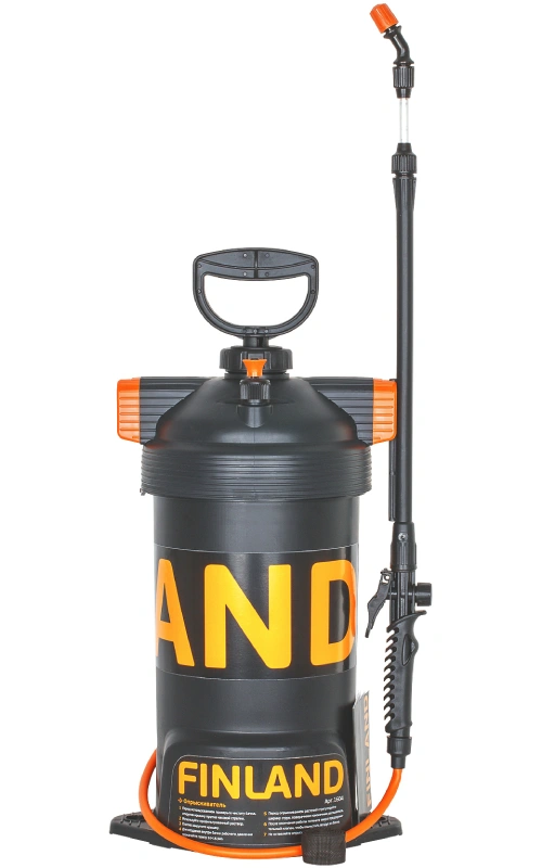 Опрыскиватель FINLAND 5 литров с телескопической штангой-распылителем из алюминия. В комплекте плечевой ремень. Регулируемая ширина струи.