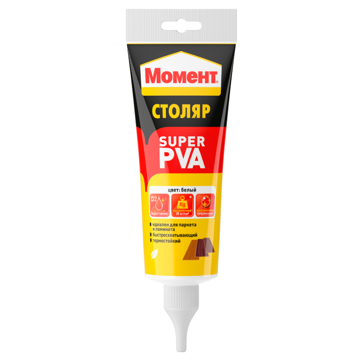 Клей Момент-Супер ПВА D2 для деревянных поверхностей, влагостойкий, 125 г является идеальным решением для склеивания всех пород дерева, ламината и изделий, изготовленных из материалов на основе древесины (ДСП, ДВП, МДФ и др).