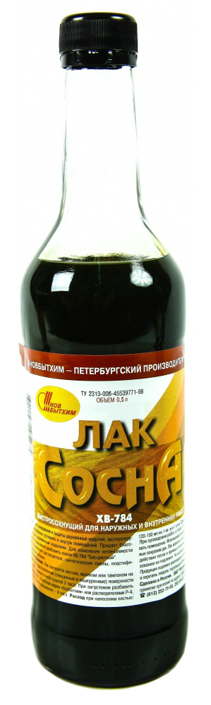 Лак ХВ-784 НОВБЫТХИМ по дереву сосна 0,5 л (арт. 3950) предназначен для тонирования и защиты деревянных изделий, эксплуатирующихся в атмосферных условиях и внутри помещений. Придаёт благородный оттенок деревянным изделиям. Для изменения интенсивности цвета покрытия тонированный лак можно разбавлять лаком бесцветным. Если необходимо подчеркнуть текстуру древесины, рекомендуется наносить бесцветный лак на дерево, предварительно обработанное водными или неводными морилками или использовать тонированный лак. Непригоден для лакировки полов.