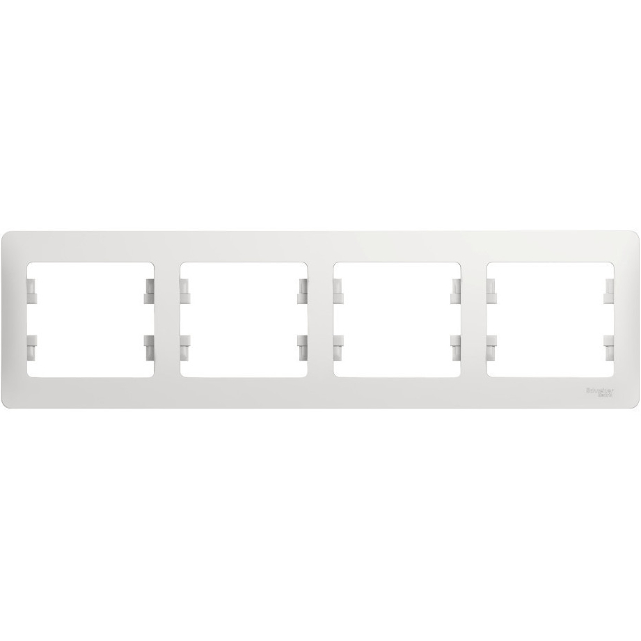Рамка Schneider Electric, Glossa, 4 поста, белая - декоративное оформление розеток, выключателей, переключателей.