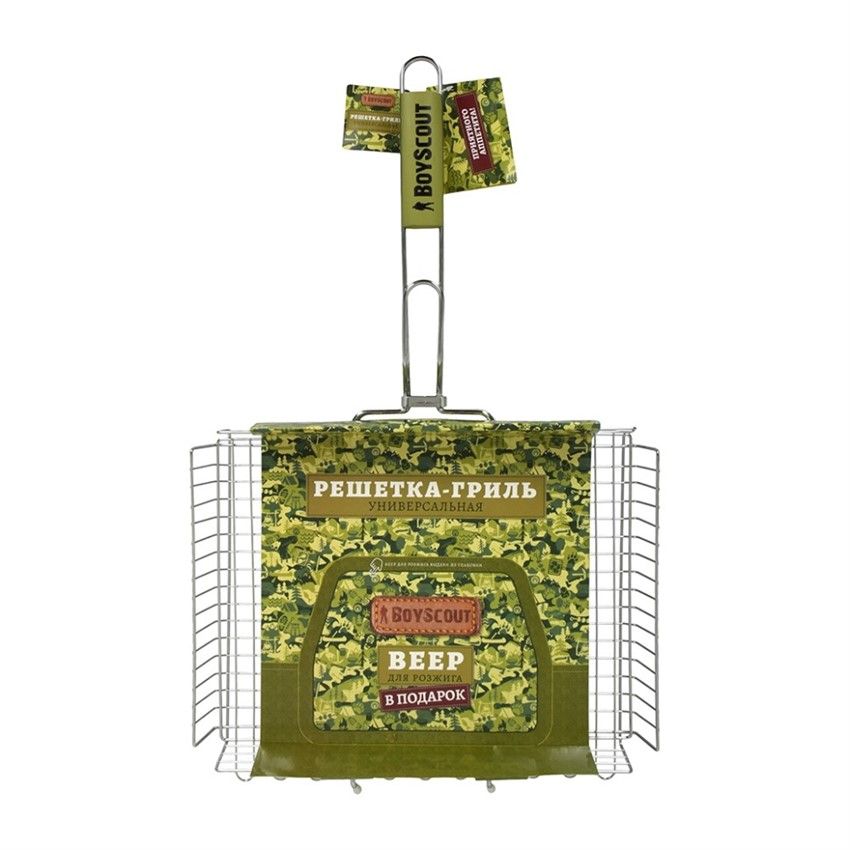 Решетка-гриль Boyscout, универсальная, большая + веер, 42х32 cм — это идеальный помощник для приготовления пищи на углях во время пикников или отдыха на природе. Благодаря большому размеру рабочей поверхности, она позволяет готовить еду сразу для всей компании, а деревянная ручка обеспечивает безопасность использования. В комплект входит удобный веер для поддержания жара углей. Практичность, безопасность и универсальность применения. Решетка идет в комплектации с веером.