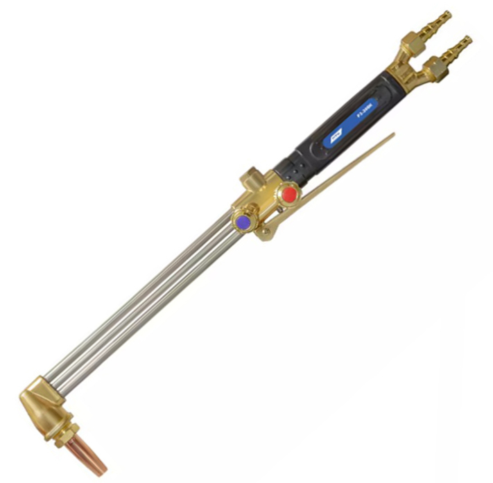 Резак пропановый Р3-300 КР ПТК внутрисоплового смешения газов предназначен для ручной кислородной резки листового и сортового металлопроката из низкоуглеродистых сталей толщиной до 300 мм. Резак обладает повышенной надежностью конструкции, которая достигается за счет штампованных латунных элементов резака. Резак может работать на пропане и ацетилене. Выбор газа зависит от установленных газосмесительных мундштуков. Мундштуки имеют три запорных пояска, которые предотвращают перетечку газов и обеспечивают смешение газов непосредственно в мундштуке, обеспечивая безопасное использование. Резак поставляется c разборным пропановым мундштуком №2PM. Давление газа на входе и расход зависит от установленного мундштука. В руководстве по эксплуатации указаны ориентировочные данные.