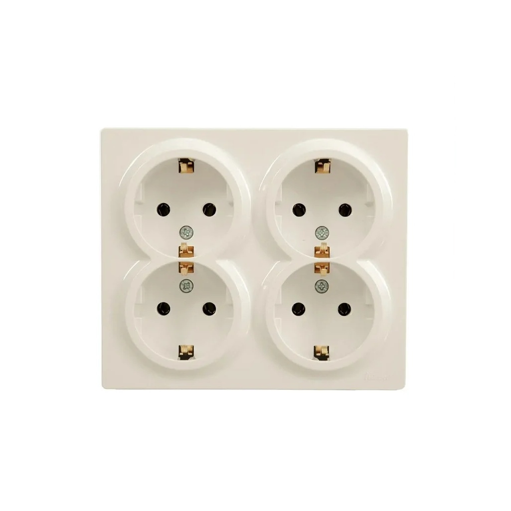 Розетка 4- местная с заземлением Lezard Leto, белый — это функциональный и безопасный электроустановочный прибор, разработанный для удобного и надёжного подключения нескольких бытовых устройств одновременно. Благодаря накладной установке, она легко монтируется на любую поверхность — дерево, бетон, гипсокартон — без необходимости штробления стен, что делает её идеальным выбором для дач, деревянных домов, гаражей и помещений с готовым ремонтом. Корпус изготовлен из ударопрочного АБС-пластика, устойчивого к механическим повреждениям, перепадам температур и негорючего состава, что обеспечивает повышенную пожаробезопасность. Каждое из четырёх гнёзд оснащено заземляющим контактом стандарта SCHUKO, что гарантирует безопасное подключение мощной техники — чайников, утюгов, компьютеров, обогревателей и других приборов. Розетка рассчитана на номинальный ток 16 А и напряжение 250 В, что соответствует требованиям стандартной бытовой сети. Прямоугольная форма габариты 150×150×50 мм и белый цвет придают изделию современный и аккуратный вид, гармонирующий с любым интерьером.
