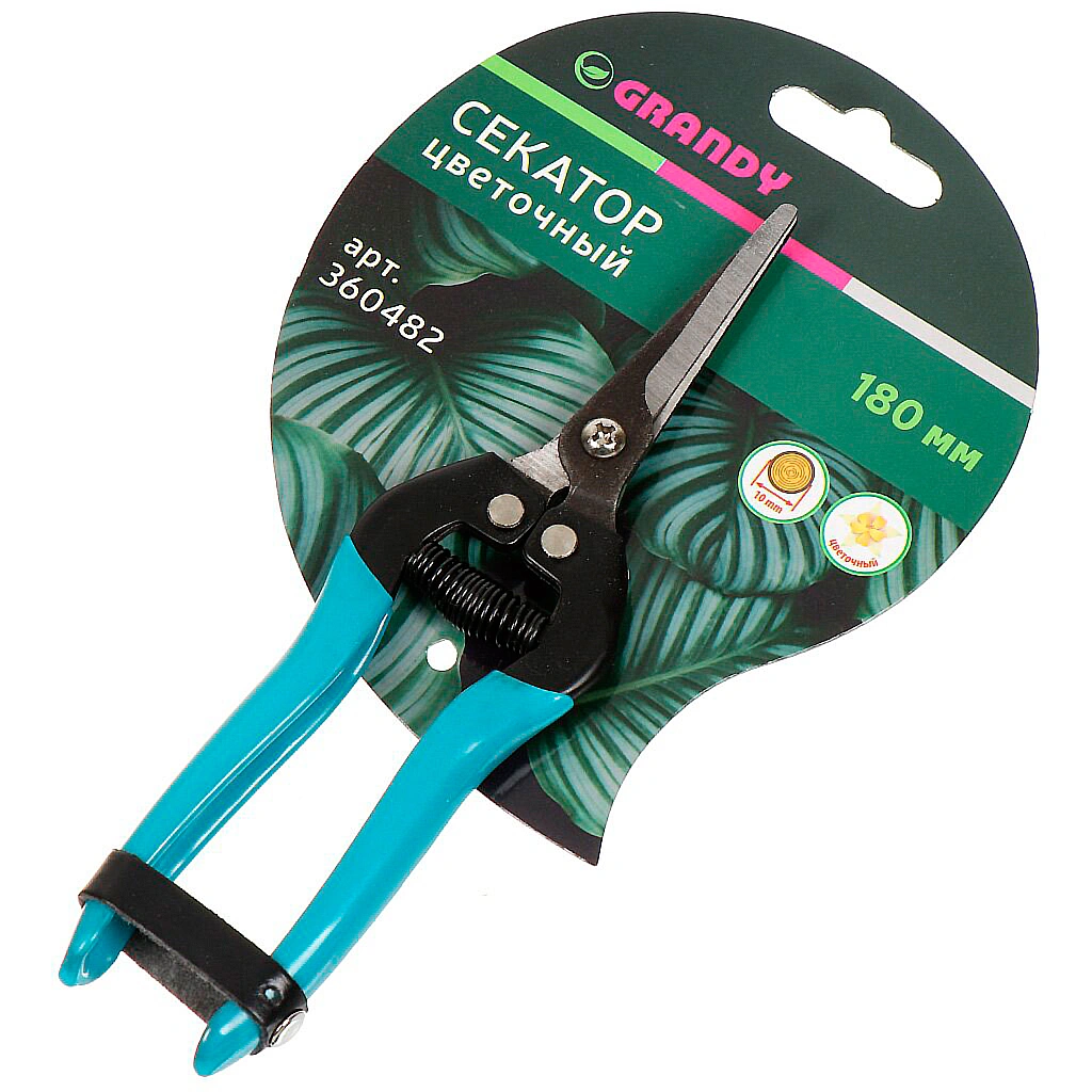 Секатор цветочный Grandy, 180 мм — это надежный инструмент для ухода за цветами и растениями. Благодаря режущим лезвиям из инструментальной стали У8 с антикоррозийным покрытием, прямому резу и обрезиненным рукояткам, он обеспечивает точность, комфорт и долговечность использования. Секатор способен обрезать ветки диаметром до 10 мм, что делает его идеальным выбором для садоводов и цветоводов.