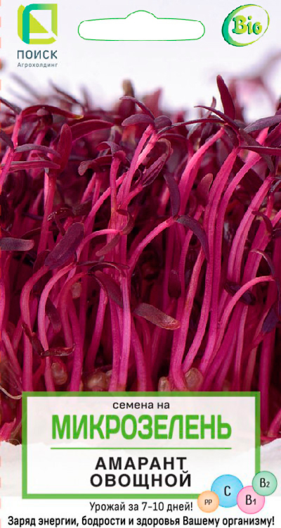 Семена на Микрозелень Амарант овощной, 1 гр. Микрозелень амаранта является очень полезным продуктом, обладая горьковато-ореховым вкусом, послужит отличным дополнением любого блюда, придаст нежный вкус мясу, рыбе, закускам, овощам, смузи и витаминизированным коктейлям. В проростках содержатся белки, аминокислоты, витамины В, Е, С, D, полиненасыщенные жирные кислоты, минеральные компоненты. Ежедневное употребление ростков амаранта даже в небольших количествах способствует оздоровлению и омоложению организма. В состав входят семена амаранта овощного Крепыш.