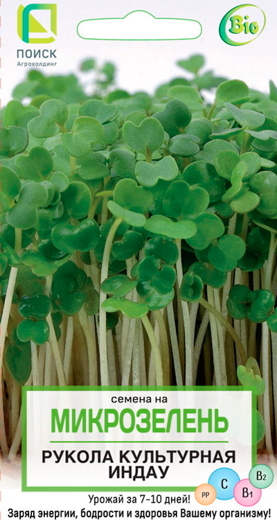 Семена на Микрозелень Рукола культурная Индау, 5 гр. Полезные и питательные проростки руколы придадут Вашему блюду пикантный орехово-горчичный вкус и свежий аромат. Это прекрасный гарнир к мясным и рыбным блюдам и отличная добавка к бутербродам и салатам. Ростки руколы - природный источник йода, ценятся за сбалансированное сочетание эфирных масел, витаминов, каротина и минеральных веществ, их потребление благотворно влияет на обмен веществ в организме, обеспечивает выведение холестерина, повышает уровень гемоглобина, укрепляет нервную систему, служит отличным средством для профилактики онкологии. В состав входят семена индау Диковина.