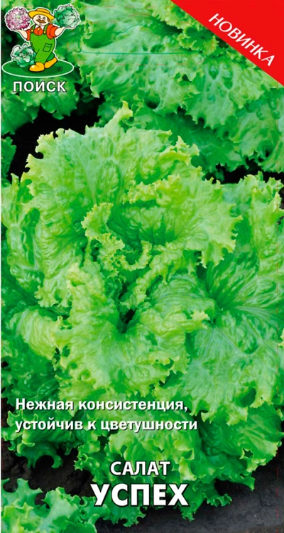 Семена Салат Успех, 1 гр. Листовой среднеспелый сорт для выращивания в открытом грунте. От полных всходов до уборки урожая 40-45 дней. Лист округлый, светло-зелёный, пузырчатый, край сильно волнистый, зубчатый. Масса растения 450-470 г. Консистенция нежная. Вкус отличный. Ценность сорта: нейтрален к длине дня, устойчив к цветушности и болезням.