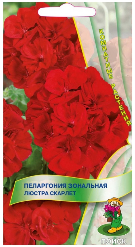Семена Пеларгония зональная Люстра Скарлет, 5 шт. Растение высотой около 35 см. Листья округлые, с темным пятном в форме подковы. Цветы диаметром до 2,5 см, красные. Прекрасно подходит для горшечной культуры, летом можно высаживать в открытый грунт и балконные ящики. Растение засухоустойчивое, предпочитает солнечные месторасположение и рыхлые плодородные почвогрунты. Посевы можно проводить начиная с января. Глубина заделки семян 0,5 см. Посадочную емкость накрывают стеклом и ставят в освещенное место. При температуре почвы +20˚C всходы появляются на 15-20 день. В фазе 2-3 настоящих листочков сеянцы пикируют. Для лучшего кущения рассаду прищипывают над 5-6 листом.