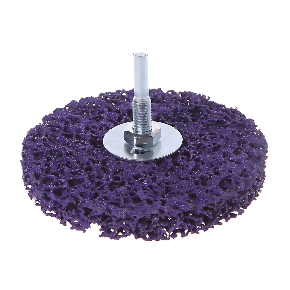 Круг шлифовальный коралловый на дрель (50 мм; фиолетовый), Росомаха 449050 представляет собой чистящее волокно, имеющее очень грубую структуру и состоящее из синтетического волокна и абразива. Открытая волоконная структура диска обеспечивает быстрое шлифование с очень незначительным засаливанием. Безопаснее чем проволочные щётки.