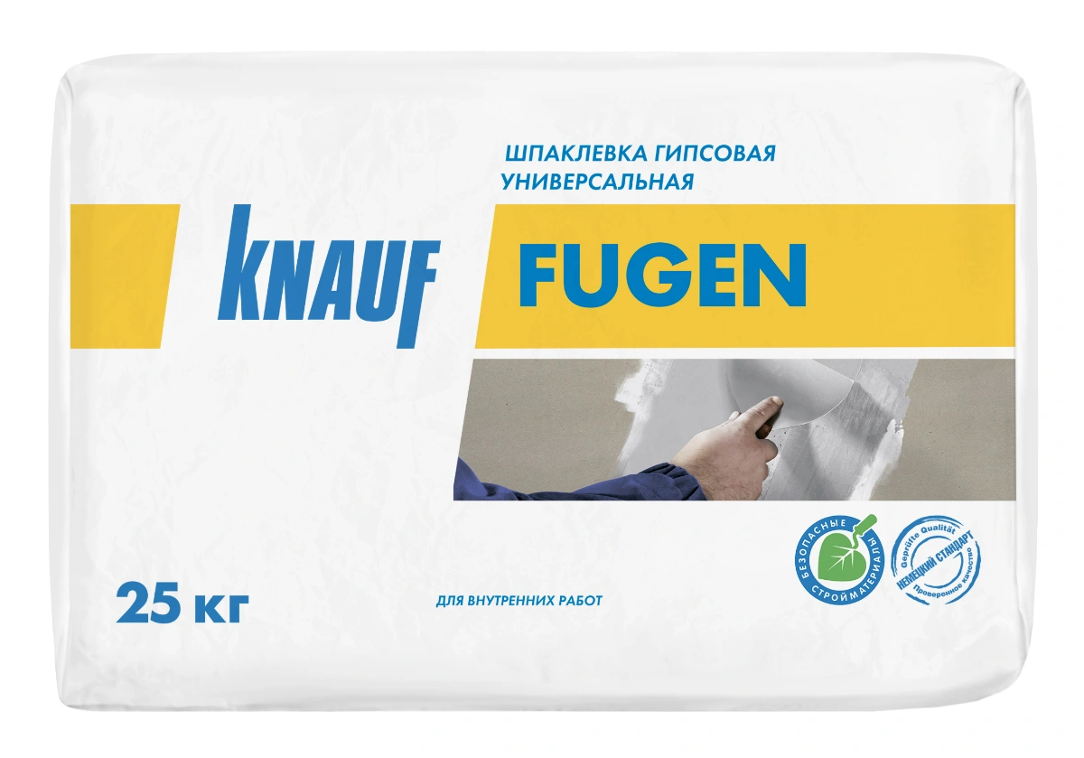 Шпаклевка гипсовая универсальная Кнауф-Фуген - сухая шпаклевочная смесь на основе гипса с полимерными добавками. Гипсовые сухие смеси могут быть различного цвета, от белого до серого и даже до розового. Это объясняется наличием природных примесей в гипсовом камне. Цвет смеси никак не влияет на ее характеристики.