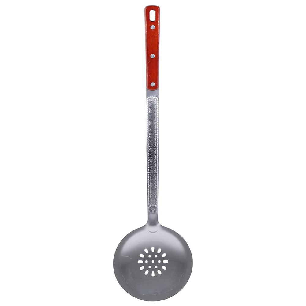 Ложка-шумовка металлическая с деревянной ручкой TM Appetite, 35 см оснащена широкой перфорированной чашей шириной 10 см из пищевой нержавеющей стали и 35-сантиметровой рукояткой из натурального дерева с термостойкой пропиткой. Продуманная система отверстий мгновенно отводит жидкость, сохраняя целостность продуктов, а удлинённая конструкция с антискользящим деревянным хватом надёжно защищает кисть от пара и горячих брызг в отличие от бюджетных инструментов с короткими ручками или пластиковыми насадками, которые деформируются при высоких температурах и требуют постоянного контроля. Благодаря монолитному креплению, инертности стали к пищевым кислотам и естественной эстетике древесины этот аксессуар не теряет форму после сотен циклов варки, легко ополаскивается и гармонично дополняет профессиональную или домашнюю кухню, экономя время на очистке бульонов и жарке.