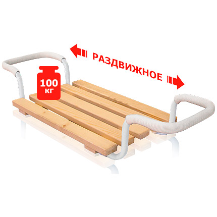 Сиденье на ванну раздвижное СВ3 - раздвижное 5-и реечное сиденье из неокрашенного дерева.