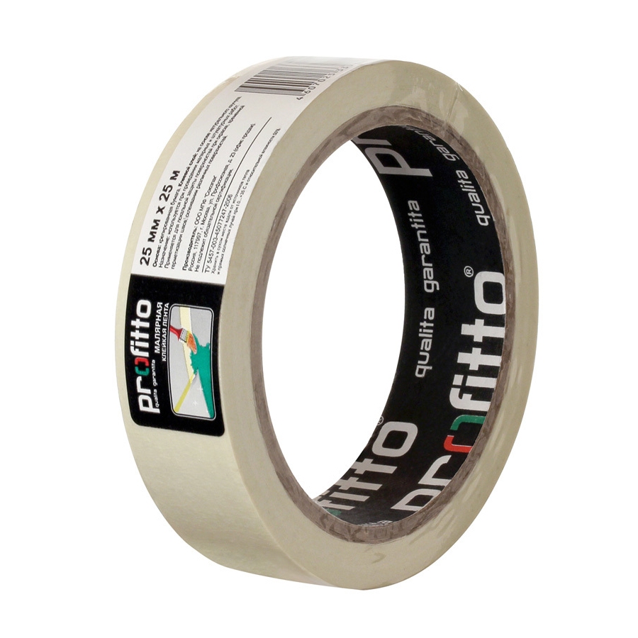 Лента малярная Profitto, на бумажной основе, 25 мм х 25 м применяется для локальной защиты поверхности при проведении малярных, штукатурных и строительный работ. Обеспечивает четкие границы при окрашивании.