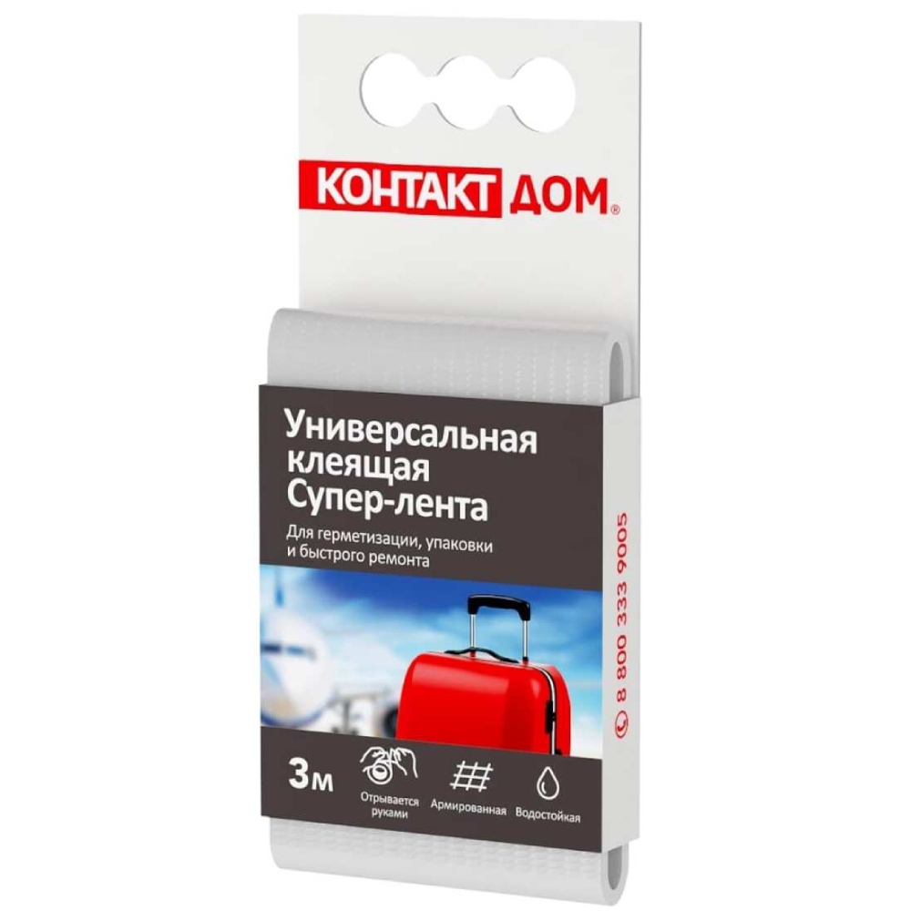 Лента монтажная Контакт Дом, армированная, универсальная, 3 м, белый - клеящая супер-лента для быстрого ремонта. Водонепроницаемая, прочная, стойкая. Для наружных и внутренних работ. Для герметизации, упаковки, быстрого ремонта.