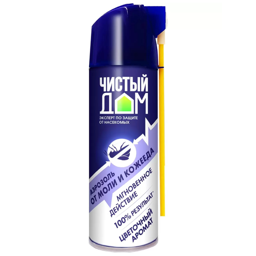 Аэрозоль от моли с двойным распылением Чистый дом, 150 мл - современное и высокоэффективное средство для уничтожения моли, ее личинок и кожееда.