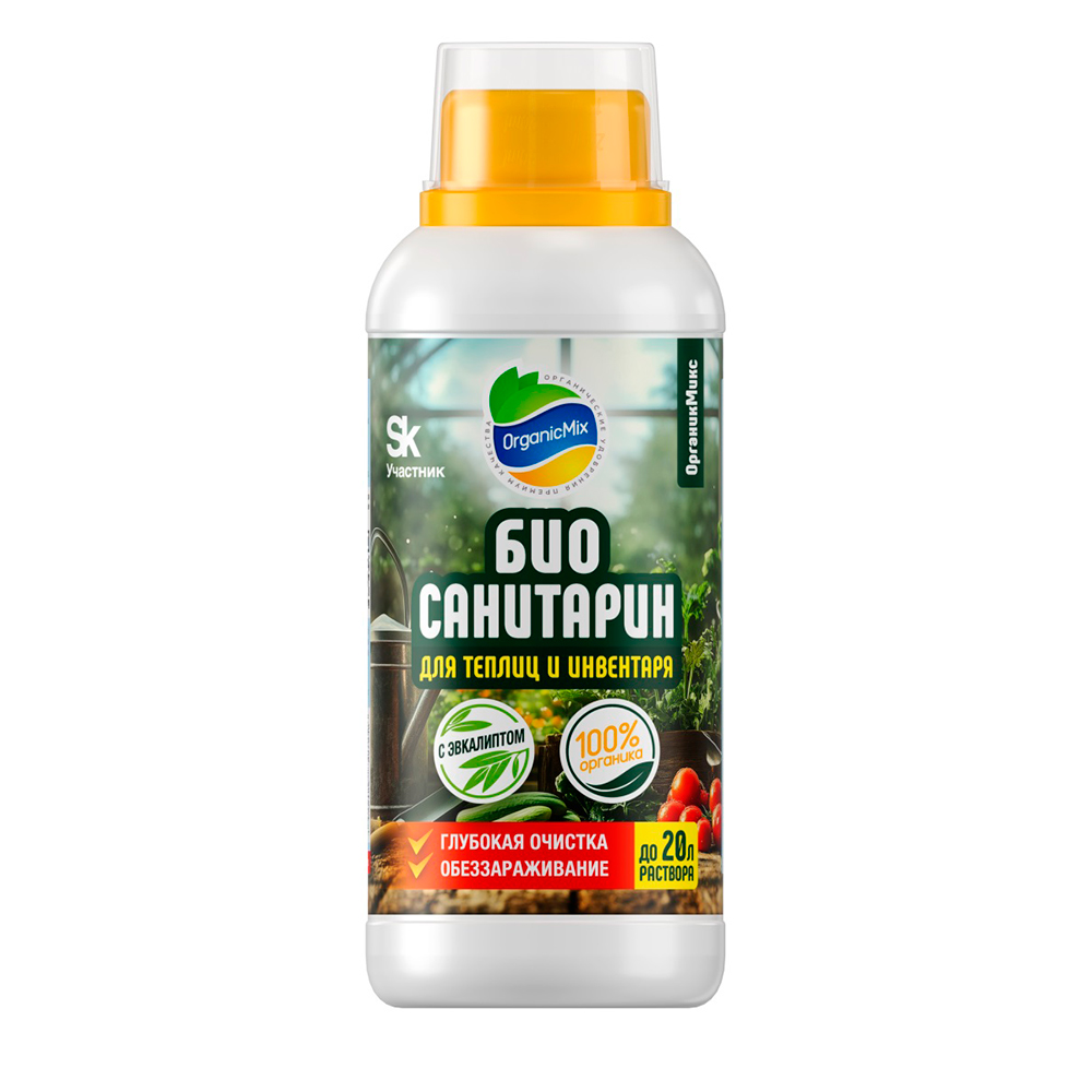 Биосанитарин для теплиц и инвентаря Органик Микс, 500 мл — это универсальное средство для комплексной очистки и обеззараживания теплиц, садового инвентаря и других поверхностей. Благодаря трёхкомпонентной защите (очистка, уничтожение патогенов и создание защитного барьера), он эффективно борется с грибковыми заболеваниями, плесенью и бактериями, сохраняя здоровье растений. Основные преимущества - безопасность для культур, экологичность, простота применения и совместимость с различными материалами.