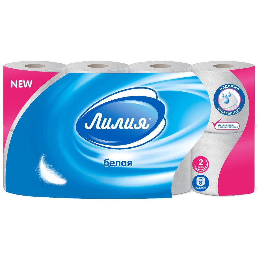Бумага туалетная Лилия, Комфорт, 2 слоя, 8 рулона - двухслойная туалетная бумага Лилия изготовлена из 100% целлюлозного сырья. Мягкая, нежная, но в тоже время прочная, бумага не расслаивается и отрывается строго по линии перфорации.