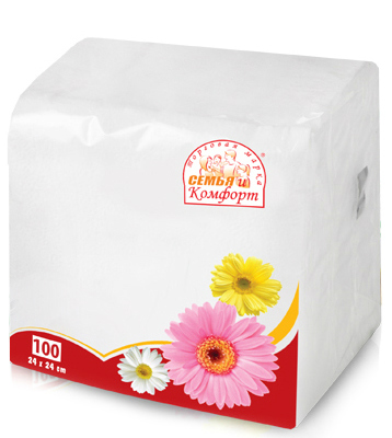 Салфетки бумажные 100шт семья и комфорт - бумажные салфетки "Семья и комфорт", выполненные из натуральной целлюлозы, станут отличным дополнением любого праздничного стола. Они отличаются необычной мягкостью и прочностью. Количество 100 шт. Слой 1.