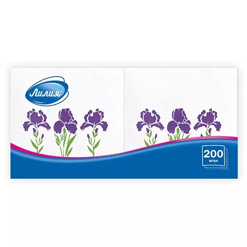 Салфетки бумажные Лилия Ирисы, 200 шт, 1 слой, 24х24 см — идеальное решение для сервировки стола и поддержания чистоты в доме. Упаковка 200 штук обеспечивает длительное использование, а компактный размер 24х24 см подходит для ежедневных нужд. Однослойная структура позволяет экономно расходовать салфетки без ущерба для эффективности.