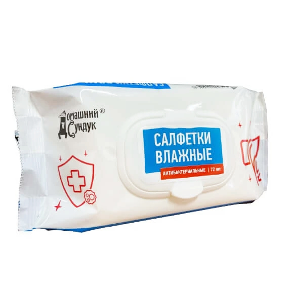 Влажные салфетки Домашний Сундук, антибактериальные, 72 шт подходят для использования в офисе, дороге, дома, на отдыхе и во время прогулок.