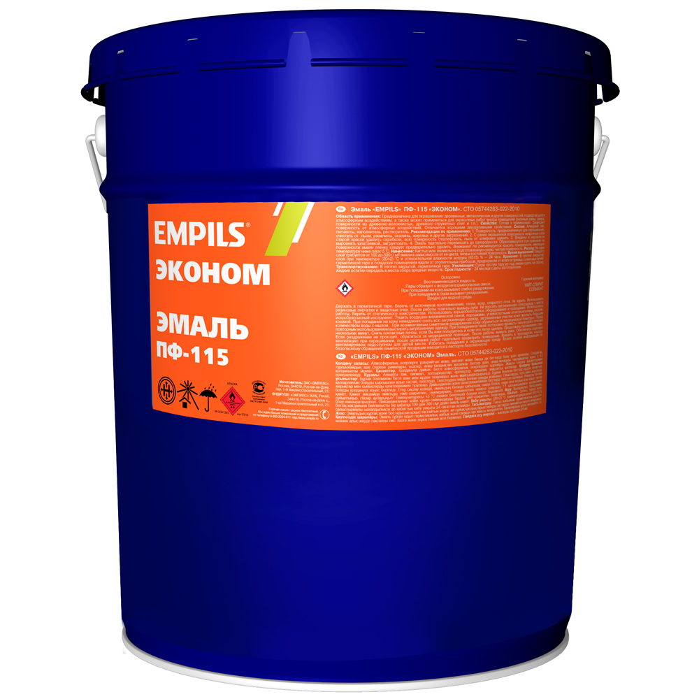 Эмаль ПФ-115 Empils Эконом предназначена для окрашивания деревянных, металлических и других поверхностей, подвергающихся атмосферным воздействиям, а также может применяться для окрасочных работ внутри помещений (оконные рамы, двери, поверхности из древесно-волокнистых, древесно-стружечных плит и т.п.).