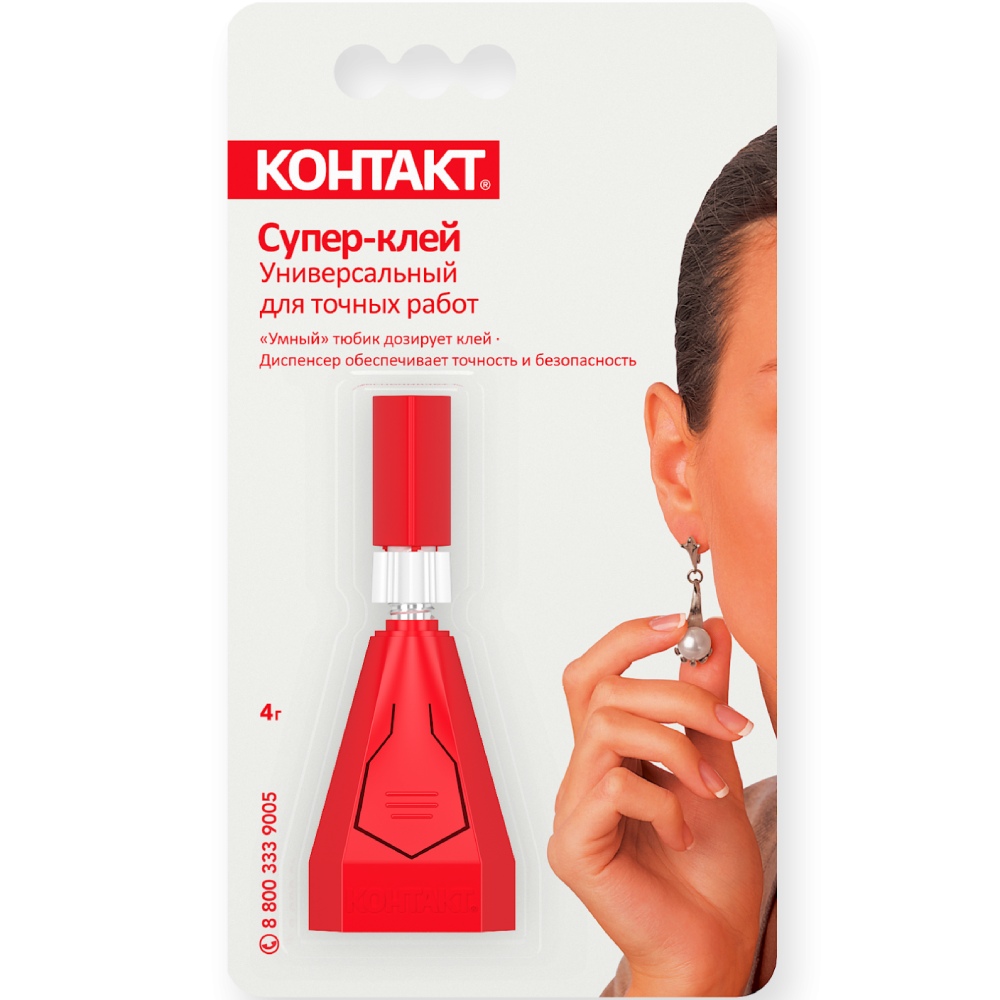 Супер-клей универсальный для точных работ Контакт, 4 г - однокомпонентный моментальный клей на основе этилцианакрилата. Предназначен для быстрого склеивания распространенных в быту материалов. Быстро и надежно соединяет склеиваемые поверхности. Прочный клеевой шов. Клеевое соединение устойчиво к органическим растворителям.