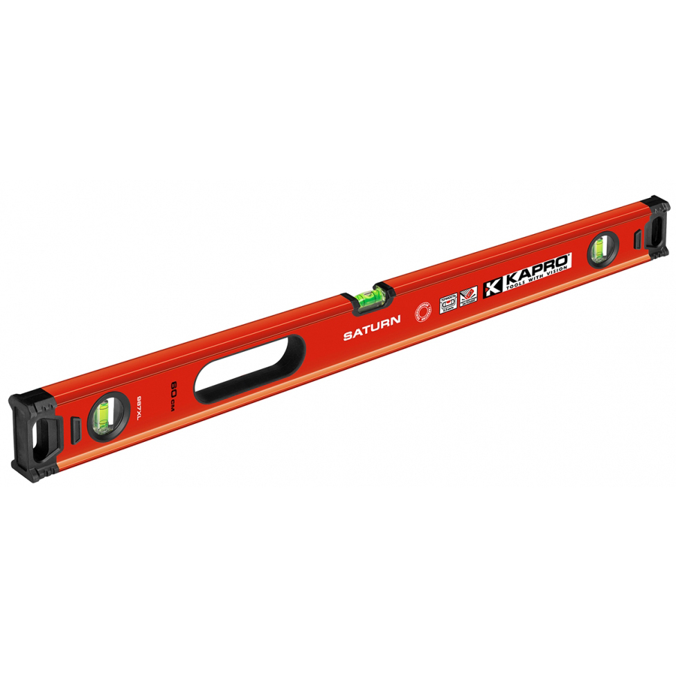 Уровень Kapro Saturn, 600 мм - профессиональный инструмент для определения вертикали и горизонтали. Он оснащен мощными магнитами для удобного крепления к металлическим поверхностям. Точность измерений составляет 0,5 мм/м. Прочный металлический корпус с защитными заглушками обеспечивает долговечность прибора.