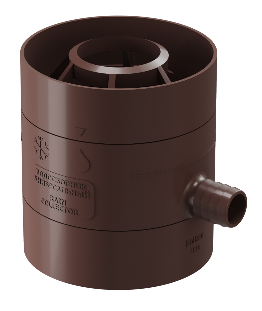 Водосборник универсальный Döcke служит для отведения дождевой воды из водосточной трубы в ёмкость с целью дальнейшего использования для хозяйственных нужд. Цвета изделия – пломбир 9003 (аналог RAL 9003), шоколад 8019 (аналог RAL 8019), каштан 8017 (аналог RAL 8017), зелёный 6005 (аналог RAL 6005), красный 3005 (аналог RAL 3005), гранат RR 29 (аналог RR29), графит 7024 (аналог RAL 7024). Состоит из крышки, стакана для сбора воды и основания.