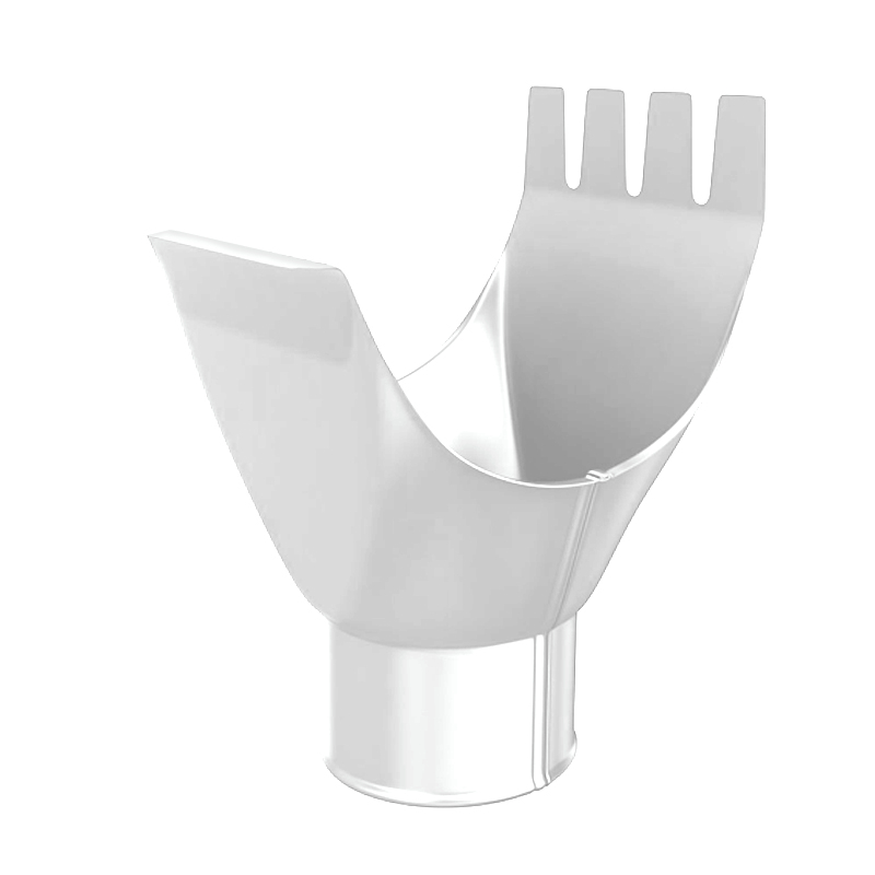 Выпуск 125 мм/90 мм, RAL-9003 РЕ двусторонний устанавливается на водосточном желобе и является устройством, передающим поступающую из желоба воду в водосточную трубу. Воронка желоба имеет привлекательный, эстетичный вид.