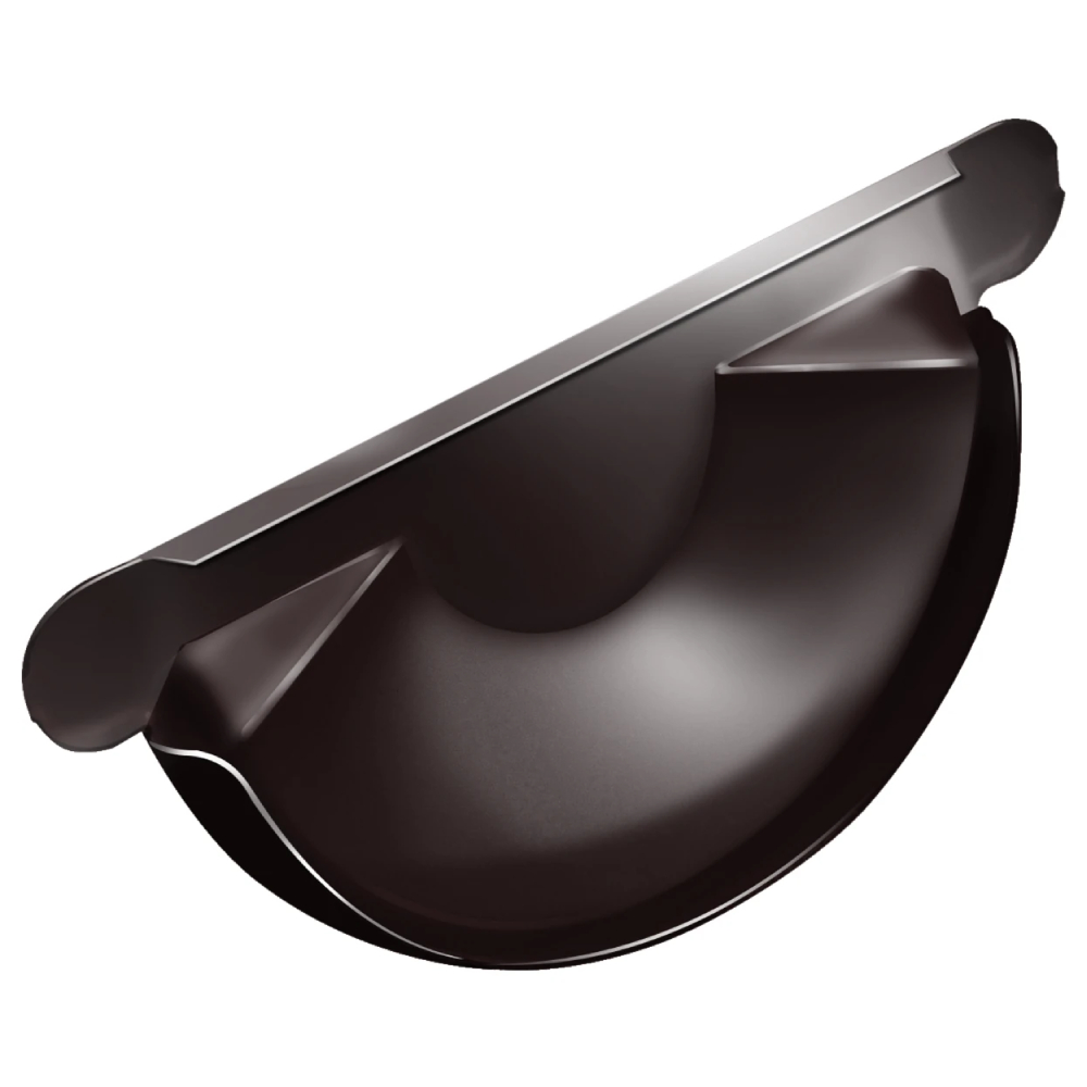 Заглушка торцевая Ф-125, RAL 8017 РЕ двусторонний устанавливается на торцах желоба. Конструкция обеспечивает постоянную фиксацию, герметичность и жесткость желоба. Может быть дополнительно зафиксирована герметиком или заклепками. Заглушка является универсальной - ее можно использовать как с правого, так и с левого края желоба.
